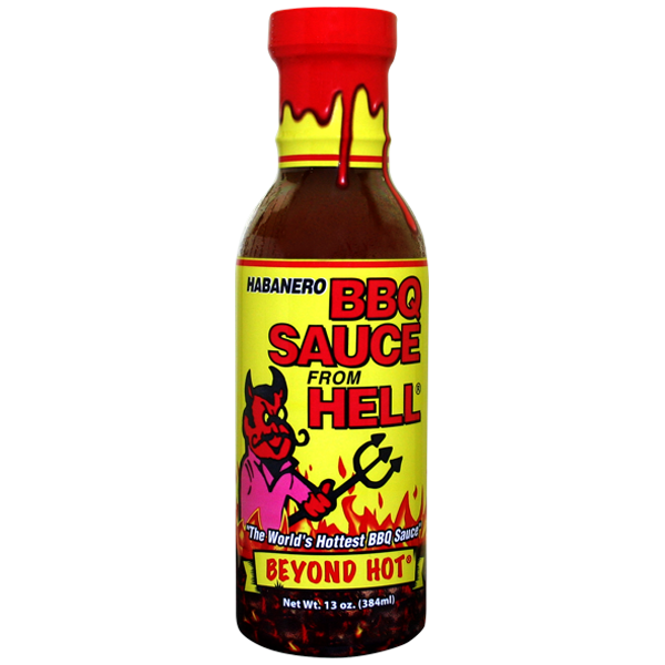 his Beyond Hot BBQ Sauce from Hell is for the palate pyromaniac who loves the true heat and flavor of habanero and pure capsicum extract. With 500,000 Scoville Units (SHU), habanero peppers were once hailed the hottest peppers in the world- and for good reason. Measuring 50,000 - 250,000 SHU, this habanero BBQ sauce is not for the faint of heart. TRY IT IF YOU DARE!