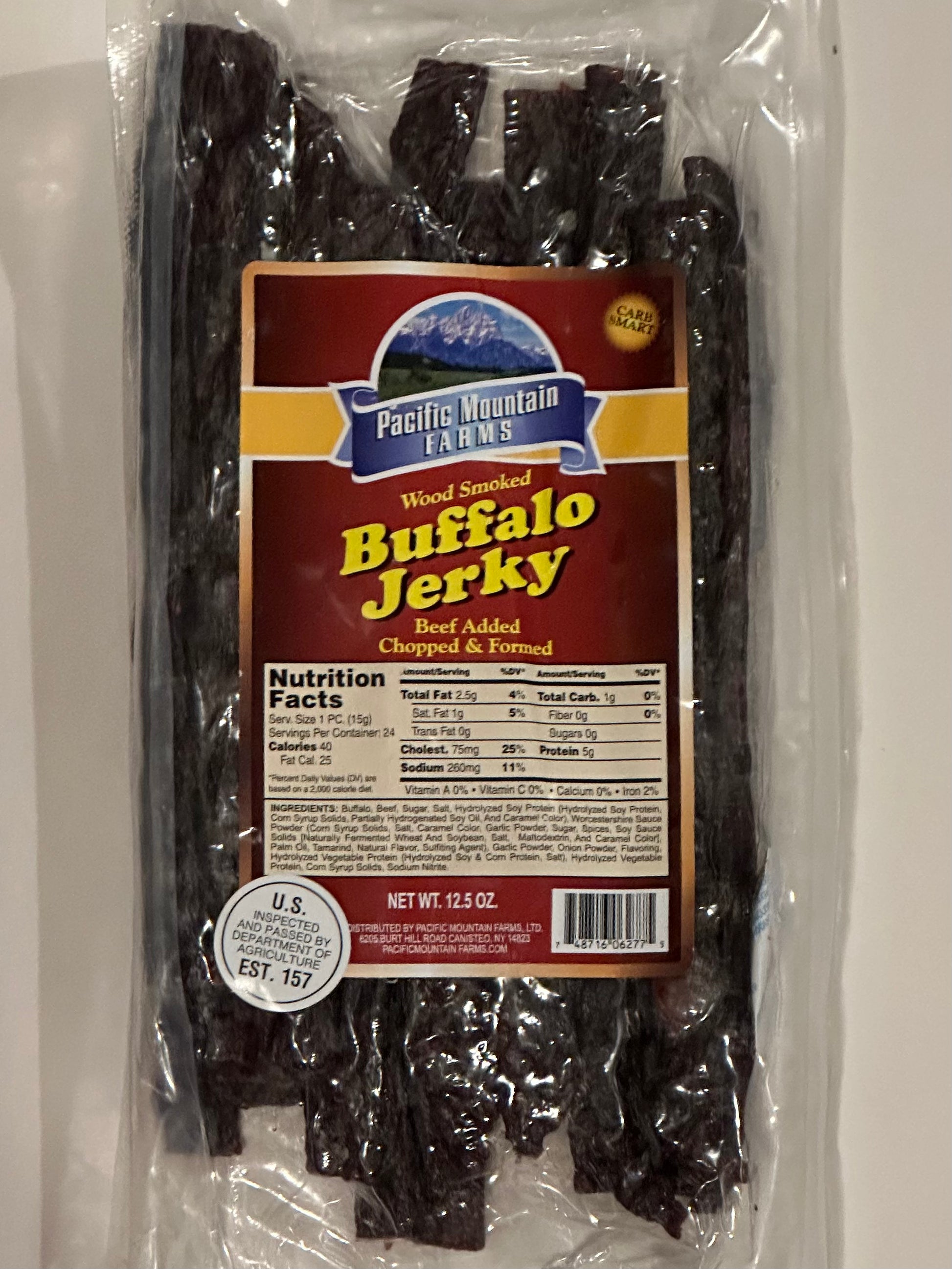 Developed to meet consumers’ interest in healthy, low fat, low carb, great tasting meat snack. Our buffalo jerky is hickory smoked and slowly dried to provide a delicious-tasting jerky. Take it along for a quick pick-me-up or a light lunch. Great for camping, fishing, sporting events, plane rides (where snacks tend to be loaded with carbs), or throwing some in your child’s packed lunch. A great gift for that jerky-lover in your life.